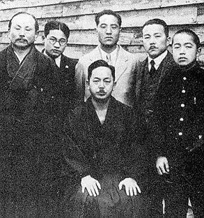 Középen: Kenwa Mabuni, a kép jobboldalán Funakochi Gichin
